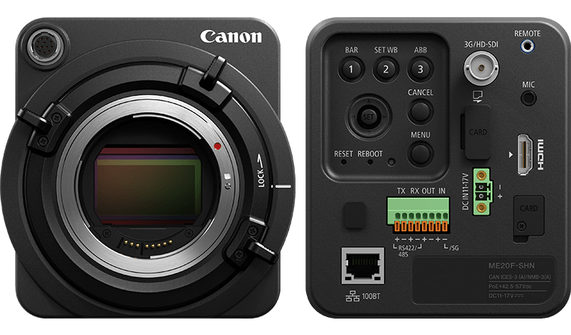 OptionsEthernet (RJ45, PoE+ compatible), 3G/HD-SDI Output, HDMI Output, External mic input, Remote control terminals (2.5mm jack and 8-pin RS-422), microSD card slot